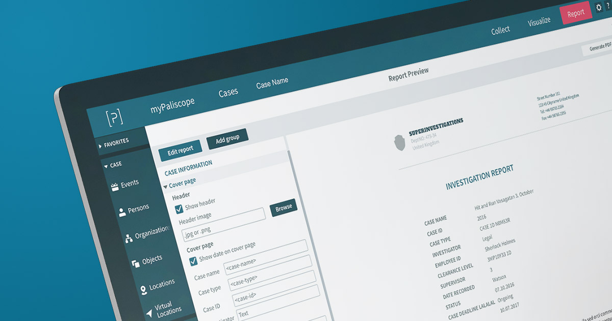 No need to worry about evidence documentation and report formatting. Paliscope Build automates all that - keeping your cases structured, secure and easy to hand over.