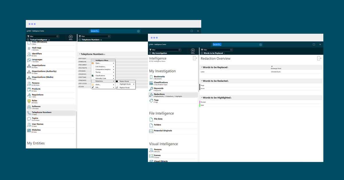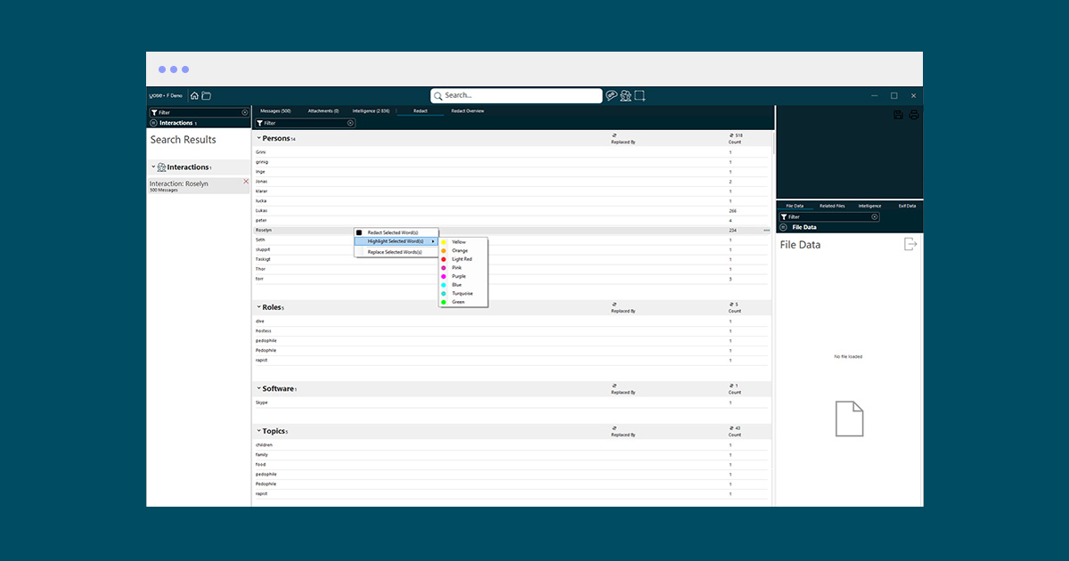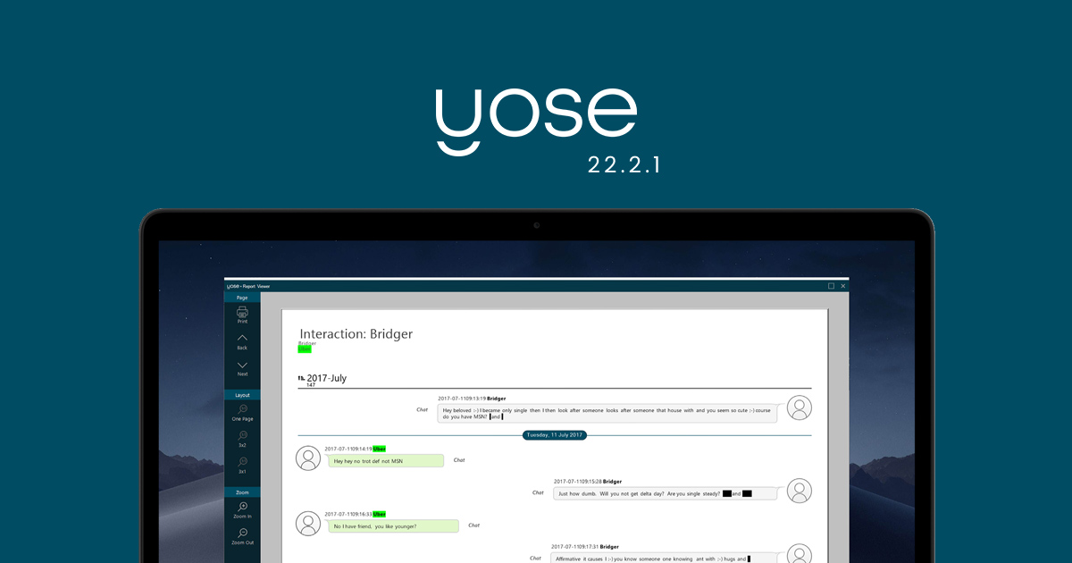 YOSE already offers the possibility to redact images, videos and PDF documents. Now, we’ve added comprehensive ways of doing the exact same thing in chat conversations and emails. This is a massive time saver, especially when you’re exporting evidence and need to mask sensitive information such as user names, telephone numbers, emails, IP numbers or any other information you choose.