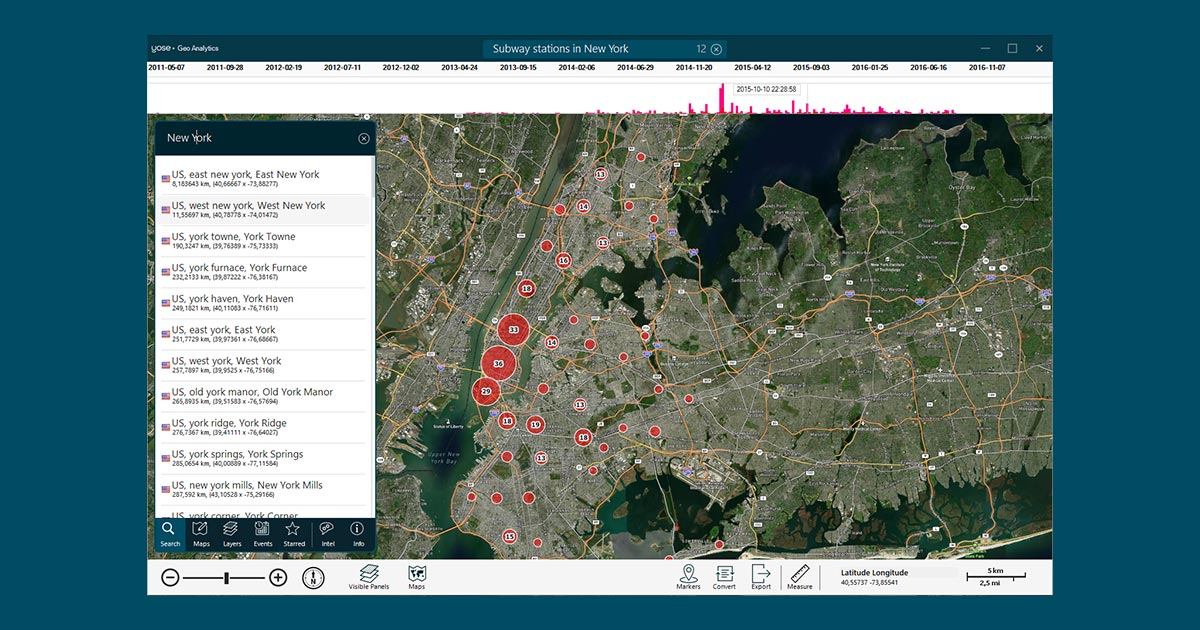 Working in synergy with YOSE’s AI-driven search engine, Geo Analytics gives you unmatched possibilities when it comes to understanding your data from a place and time perspective. The software is so approachable, anyone can leverage its incredible superpowers to analyze multiple layers of geographical intelligence and display it in a way that is easy to understand.