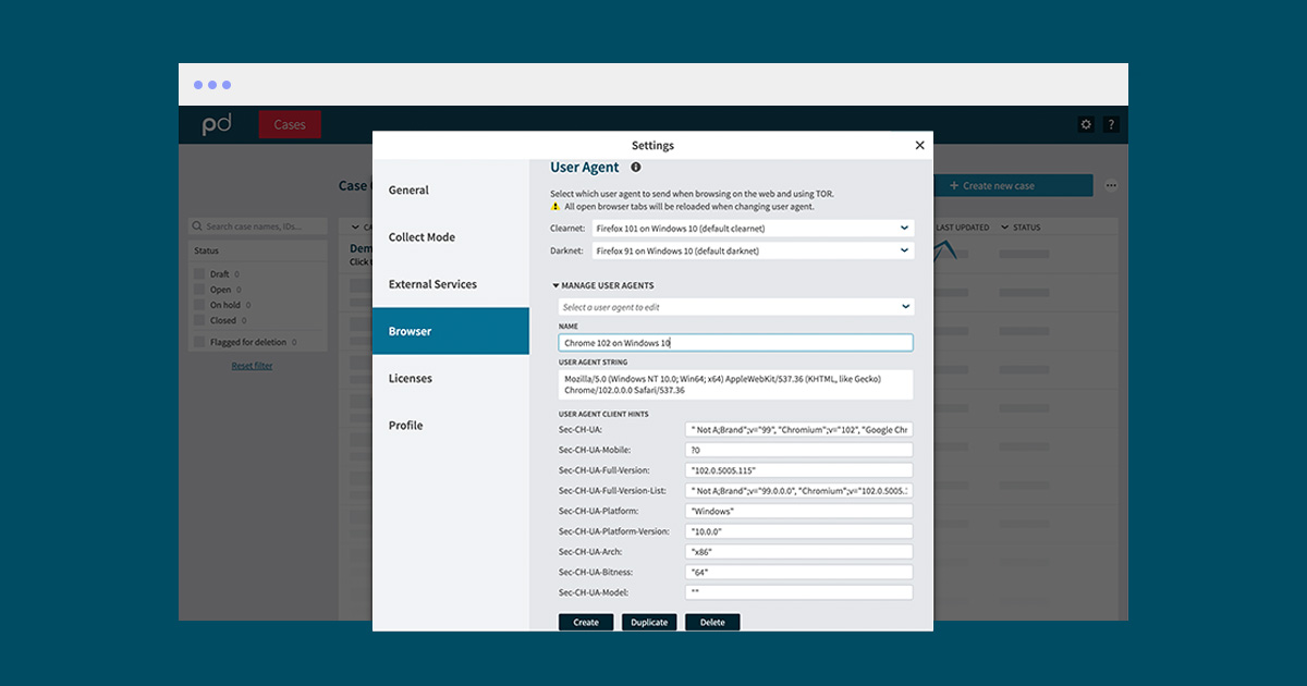 No need to use plugins to pretend you’re using a different browser than you are using. With this release we introduce custom user agents, giving you full control over which browser information is shared with the server you collect data from.
