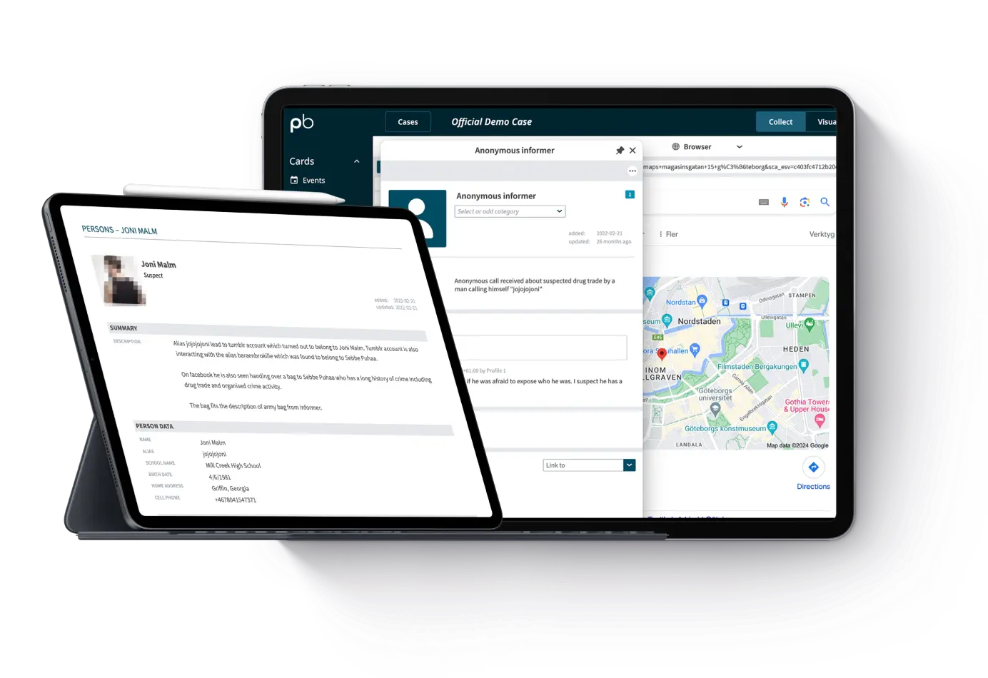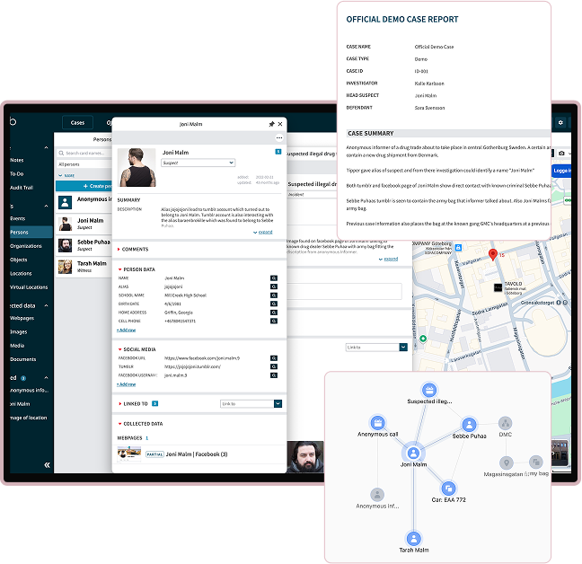Easily create structure and continuity in your investigations with profile cards and predefined case formats.